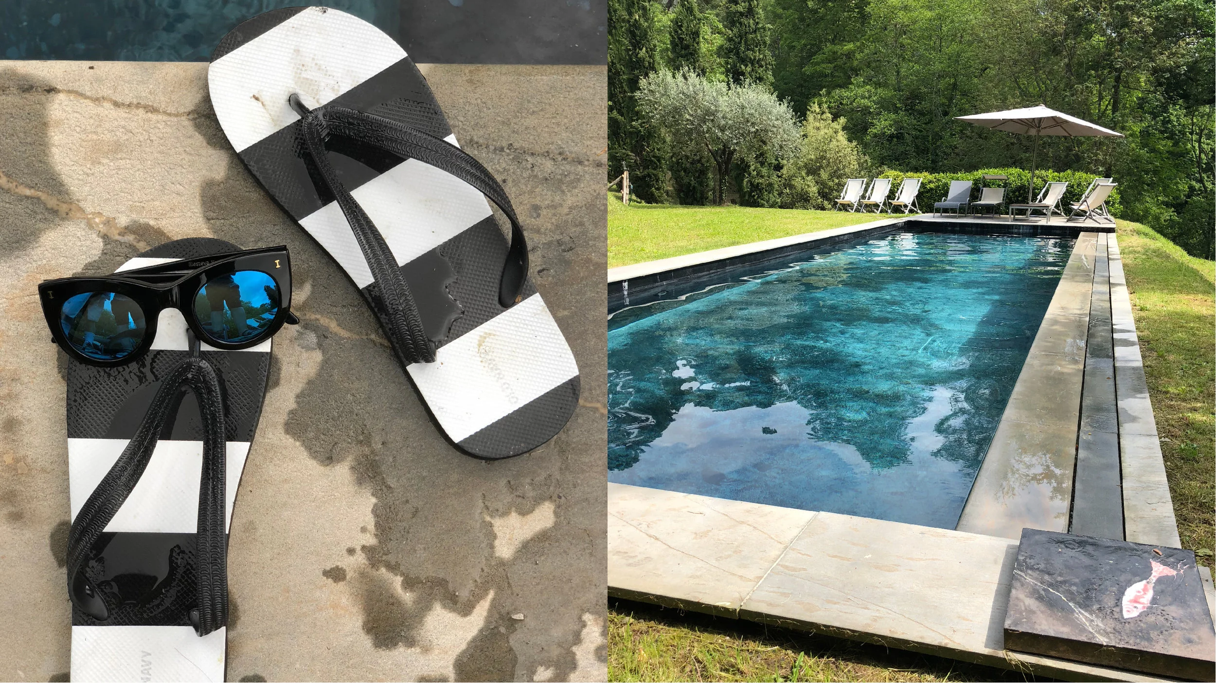 Le Tre Case is a sensitively restored 16th century stone house in Orbicciano, a small village in the town of Camaiore, in the province of Lucca, Tuscany. It is surrounded by stoic hedges and lush gardens, and presides over a terraced olive grove through which one lightly steps toward an in-ground pool and patio. Ancient trees surround the property, taking pleasure in the company of this lovely old friend.